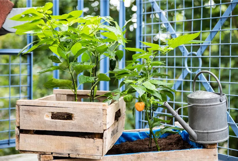 Gerade im Bereich der Nutzpflanzen lassen sich viele Urban Gardening Ideen umsetzen, die auf wenig Raum für leckere Ernten und besondere Aromen sorgen. Denn warum sollte man auf knackiges Gemüse und süßes Obst verzichten, nur, weil man keinen großen Nutzgarten zur Verfügung hat? Mittlerweile gibt es viele Arten und Sorten, die perfekt für die Kultivierung im Kübel oder Balkonkasten geeignet sind und so kann man sich leckere Ernten auch vom Balkon oder von der Terrasse holen. Für einen sonnigen Balkon oder eine Südterrasse bieten sich vor allem wärmeliebende Pflanzen an. Wer beim Urban Gardening voll durchstarten will, setzt auf Tomaten, Chilis oder Paprika. Diese Pflanzen brauchen zum Ausreifen der Früchte und für das intensive Aroma viel Sonne und sollten daher die meiste Zeit des Tages auch in der Sonne stehen. Bei einem Südbalkon und einer nach Süden ausgerichteten Terrasse ist das kein Problem. Viele Sorten eignen sich für die Topfkultur und wachsen und gedeihen dort prächtig. Aber auch Obst wie Erdbeeren, Himbeeren oder Johannisbeeren sind beliebte Snacks vom Balkon oder der Terrasse. Wer ausreichend Platz zur Verfügung hat kann sogar leckeres Säulenobst wie Apfel, Birne oder Quitte auf dem Balkon oder auf der Terrasse kultivieren und dem Urban Gardening damit gerecht werden.