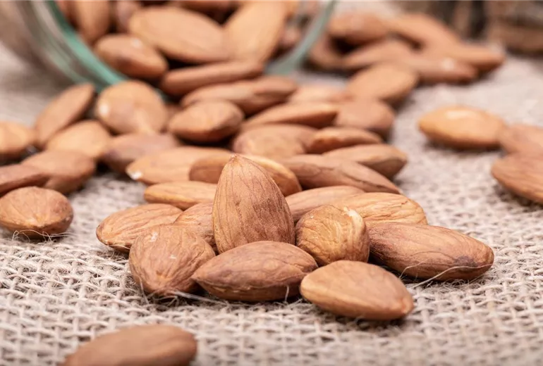 Mandeln, die nicht zu den Nüssen gehören, wie viele meinen, zählen zu den Steinfrüchten wie Pfirsiche und Aprikosen. Wer in seinem Garten einen Mandelbaum mit essbaren Mandeln hat, kann mit dem Verzehr von Mandeln einen wichtigen Beitrag für die eigene Gesundheit leisten. Denn diese stecken voller gesunder Inhaltsstoffe. Obwohl Mandeln bis zu 50 Prozent aus Fett bestehen, zählen sie dennoch nicht zu den Dickmachern. Der größte Fettanteil in den Mandeln besteht nämlich überwiegend aus essentiellen Fettsäuren, die der Körper nicht selbst herstellen kann und die ihm deshalb regelmäßig zugeführt werden müssen. Neben den ungesättigten Fettsäuren enthalten Mandeln wertvolle Proteine, Vitamin E und B, Kalzium, Kalium und auch Magnesium. Außerdem gehören auch Eisen, Zink und verschiedene Ballaststoffe sowie sekundäre Pflanzenstoffe zu ihren Inhaltsstoffen.
