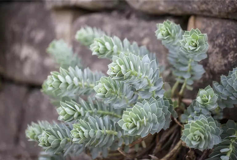 Es gibt eine Menge Pflanzen, welche an heißen trockenen Standorten regelrecht aufblühen. Erkennbar ist solche trockenheitsresistente Flora an ein paar Merkmalen. Um die Verdunstung an der Oberfläche zu reduzieren, haben manche Pflanzen wie etwa das Eisenkraut ( Verbena bonariensis ) kleine Blätter und andere wie der Woll-Ziest ( Stachys byzantina ) einen feinen Flaum auf den Blättern. Es gibt auch Pflanzen, die durch ihre silberne oder graue Blattfärbung das Sonnenlicht reflektieren. Dadurch heizen sie sich weniger stark auf. Ein Beispiel dafür ist die Blauraute ( Perovskia abrotanoides ). Wie eine zusätzliche Schutzschicht fungieren derbe, harte Blätter, wie sie beispielsweise die Edeldistel ( Eryngium planum ) hat. Mit einem eigenen Wasserspeicher sind die sogenannten Dickblatt-Gewächse ( Crassulaceae ) ausgestattet. Dazu zählen unter anderem die Wolfsmilchgewächse ( Euphorbia ) sowie verschiedene Sedum-Arten. Tief wurzelnde Pflanzen gelangen an weiter unten liegende Wasservorräte im Boden.