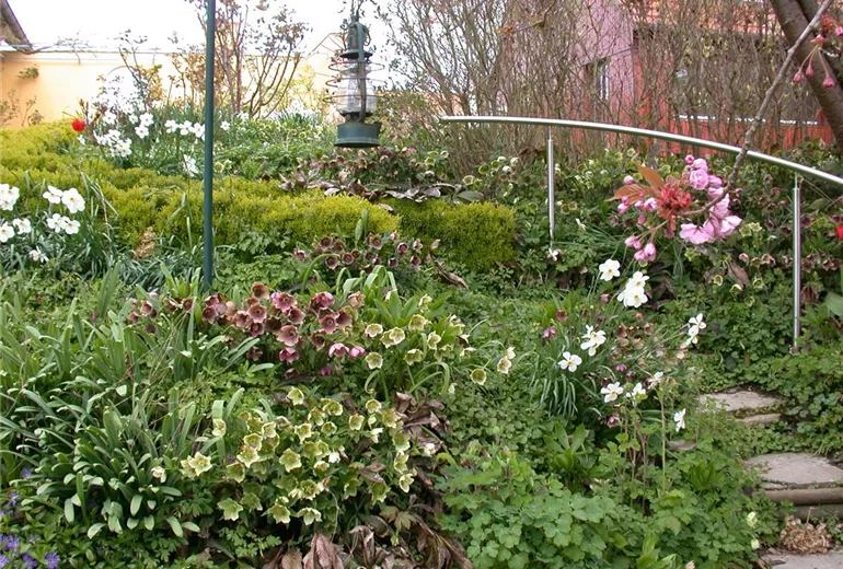 Zusätzliche Akzente schaffen Sie durch Beeteinfassungen, Rankhilfen und Dekoelemente aus natürlichen Materialien wie Holzzäunchen, Weidenranken, Buchs und Hecken. Hauptsache üppig, lautet einer der Wahlsprüche für den Cottage Garden.
