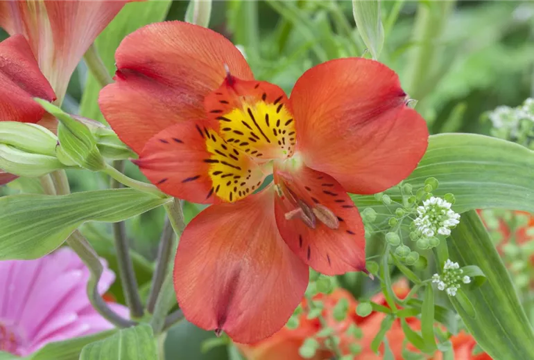 Die Astern warten mit einem bunten Farbenrausch auf. Je nach Sorte variieren ihre Farben von Weiß, Gelb, Orange, Rot, Rosa und Violett, und unterschiedliche Blütezeiten versprechen besonders lange Freude. Die Blüten können einfach, halb gefüllt oder gefüllt sein. Sie erreichen eine Höhe von ca. 60 cm. In der Vase bleiben die Callistephus bis zu zwei Wochen lang frisch.