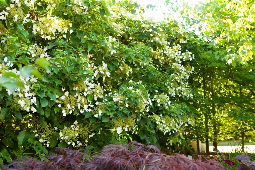 Kletterpflanzen machen Schatten im Garten grün! Auch wenn die Auswahl an Kletterpflanzen, die sich auch im Schatten wohl fühlen, eher gering ist: es gibt sie, die Kletterpflanzen, die selbst in die schattigste Ecke ein bisschen Farbe bringen. Die Kletter-Hortensie mag den Schatten wie ihre am Boden gebliebenen Schwestern viel lieber, als die Sonne. Mauern mit bis zu 10 Metern Höhe sind für die Kletter-Hortensie dank ihrer Haftwurzeln kein Problem und so lassen sich schattige Hauswände perfekt begrünen. Aber auch die Großblättrige Pfeifenwinde, der Wilde Wein und Efeu sind eine gute grüne Farbquelle im Schatten.