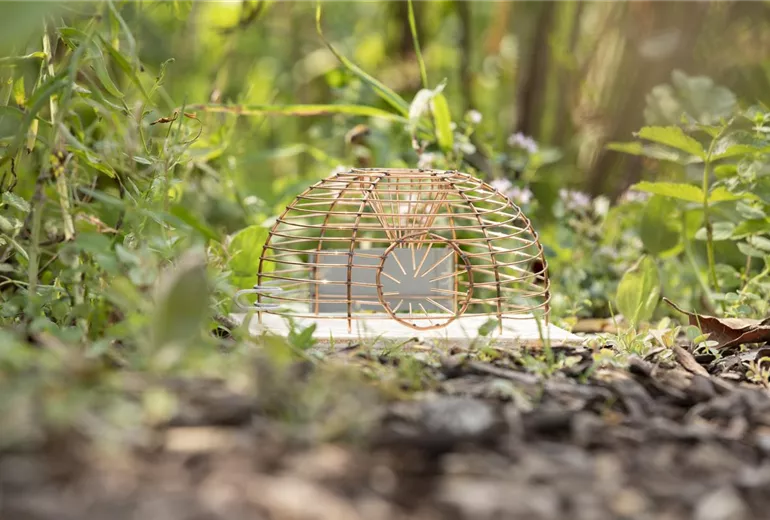 Wer einen Garten anlegt oder umgestaltet, kann einen effektiven Schutz vor Wühlmäusen gut einplanen. Der besteht in einem dichten Maschendraht, den man einen halben Meter tief eingräbt und über dem Boden ebenso hoch herausragen lässt. In das umzäunte Gebiet finden die lästigen Nager keinen Zugang. Ebenso wenig wie zum jungen Baum, den man mit Wurzelschutz aus Draht umringt. Dasselbe Prinzip wendet man beim Blumenzwiebeln-Pflanzen zum Schutz vor Wühlmäusen an, indem man sie in einen Drahtkorb setzt.
