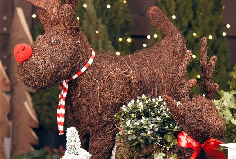 Alternativ dazu eigenen sich auch Solarlichter für den weihnachtlich geschmückten Garten. Sie verfügen bereits über einen eingebauten Dämmerungssensor und schalten sich automatisch ein und wieder aus. Zudem haben die Solarlämpchen den Vorteil, dass sie unabhängig von einer Steckdose betrieben werden können. Damit lässt sich auch das Tannenbäumchen mitten im Garten ohne ellenlange Kabel zum Christbaum illuminieren. Nett sind zudem auch leuchtende Blüten-Lichterketten, mit denen sich laublose Gehölze im winterlichen Garten dekorieren lassen.
