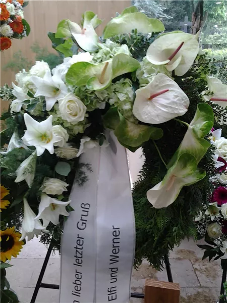 In einem persönlichen Gespräch finden wir einen Weg, wie Sie Ihre Gefühle gegenüber dem Verstorbenen Ausdruck verleihen können. Vom persönlichen Grabstrauß, über Trauerkränze, bis hin zum Sargschmuck finden Sie bei uns eine große Auswahl an geschmack- und liebevollen Blumenarrangements. Natürlich fertigen wir Ihnen auch gerne Trauerschmuck nach Ihren individuellen Vorstellungen an.
