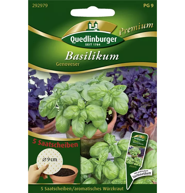 Das Garten-Basilikum 'Genoveser' (Ocimum basilicum) ist eine Kräuterpflanze mit einem würzigen Geschmack. Seine dunkelgrünen, glänzenden Blätter sind eiförmig und gewellt. Für das optimale Wachstum des Garten-Basilikums 'Genoveser' werden ein sonniger Standort und durchlässiger, nährstoffreicher Boden benötigt.