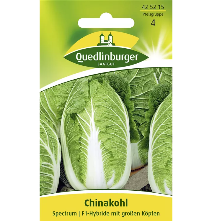 Der Chinakohl 'Spectrum F1' (Brassica rapa subsp. pekinensis) ist eine pikant schmeckende Gemüsepflanze. Seine Blätter können geerntet werden, sobald er ca. 40 erreicht hat. Für das optimale Wachstum des Chinakohls 'Spectrum F1' werden ein sonniger Standort und durchlässiger, nährstoffreicher Boden benötigt.