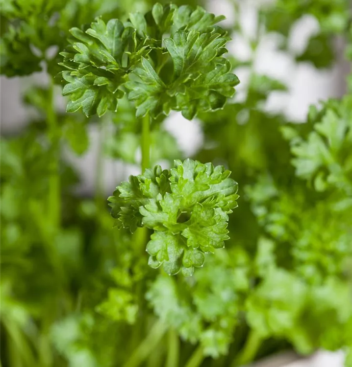 Die Krause Petersilie 'Mooskrause 2' ist als Kübelpflanze, aber auch im Bauerngarten, zum Frischverzehr, zum Kochen oder für Saucen & Dips sehr beliebt.