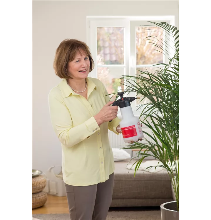 Sprühen in jeder Position (360°). Kunststoffbehälter mit 1,25L Füllinhalt. Ergonomische und effiziente Handpumpe bis 3 bar Betriebsdruck.