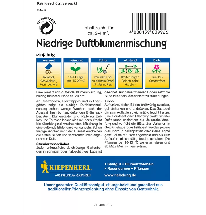 Die bunten Blüten erscheinen von Mai bis Oktober. Diese sind stark duftend.