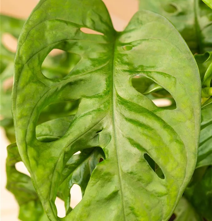 Die Blätter des Fensterblatts 'Monkey Leaf' sind dunkelgrün.