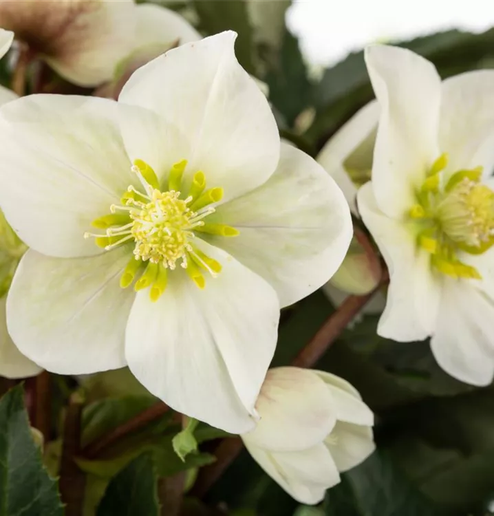 Helleborus x ericsmithii 'HGC Shooting Star'® bildet cremeweiße Blüten ab Dezember.