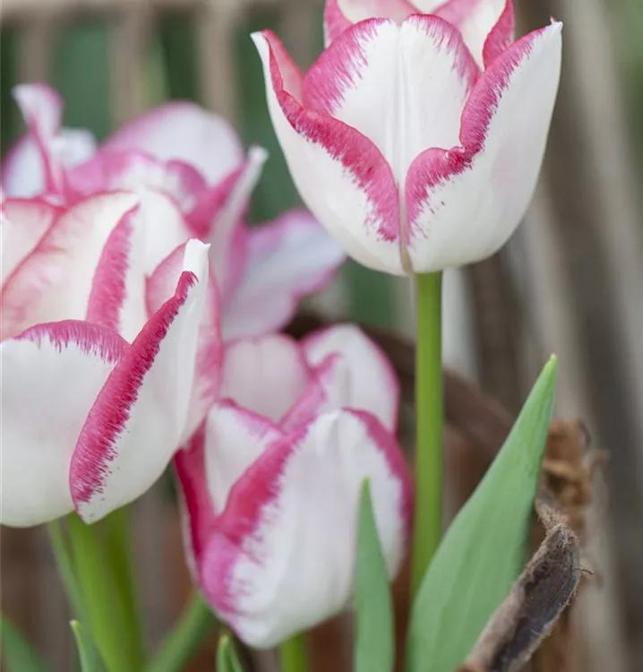 Die Tulpe 'Affaire' hat eine besonders imposante Wirkung. Die besonders schöne Farbgebung macht die Tulpe zu einem Blütenstar in Ihrem Garten. Strahlendes weiß geflammt mit einem kräftigen leuchtemdem Pink. Richtig gut wirkt diese Sorte wenn Sie in größeren Gruppen gepflanzt wird. Die Tulpe 'Affaire' (Tulipa) ist eine pflegeleichte Pflanze, die purpurrot-weiß blüht. Die Blüten verströmen einen angenehmen Duft und erscheinen von April bis Mai. Bevorzugt wird ein sonniger Standort.