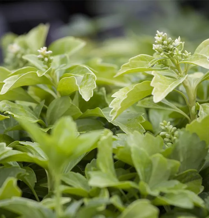 Diese immergrüne Staude bezaubert insbesondere mit einem kontrastreichen Schauspiel aus Blatt- und Blütenschmuck. Sie ist damit eine optimale Alternative zu anderen Schattenpflanzen wie Efeu oder Farne. Pachysandra terminalis gedeiht auf fast allen Böden hervorragend. Mit Hilfe seiner unterirdischen Ausläufer breitet es sich ziemlich schnell aus. Es ist besonders gut zur Unterpflanzung von Gehölzen geeignet, da es auch den Wurzeldruck von größeren Bäumen mühelos ertragen kann.