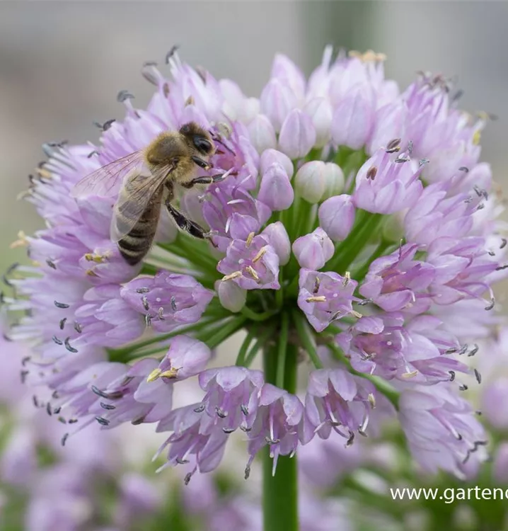 Der Zierlauch (Allium) bringt ansehnliche, helllilarbene Blüten von Mitte Juni bis Ende Juli hervor. Bevorzugt wird ein durchlässiger, humoser, nährstoffreicher Boden in sonniger Lage. Die aufrechte Staude erreicht gewöhnlich eine Höhe von 45 - 55 cm und wird bis zu 40 cm breit.