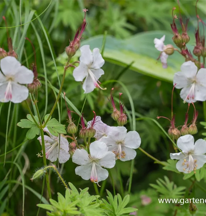 Geranium x cantabrigiense 'St. Ola' bildet hellrosafarbene Blüten ab Juni.
