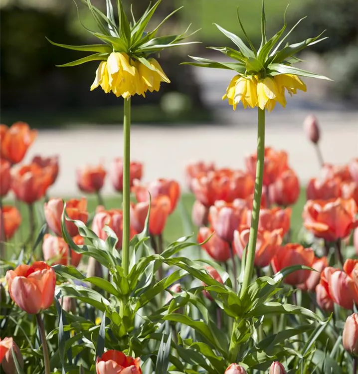 Die Garten-Kaiserkrone 'Maxima Lutea' setzt schöne Akzente gemeinsam mit: