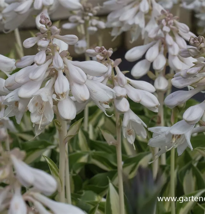 Hosta 'Ann Kulpa' bildet weiße Blüten ab Juni.