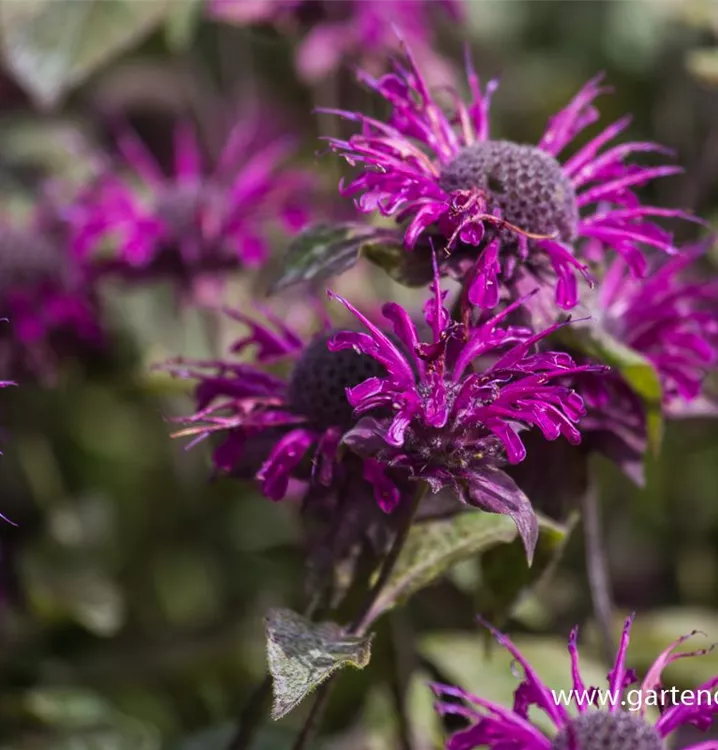 Die Garten-Indianernessel 'Saxon Purple' (Monarda fistulosa) ist eine aufrechte, ausläuferbildende Staude, die von Juli bis August violette, lippenförmige, in Quirle angeordnete Blüten mit einem angenehmen Duft bildet. An einem sonnigen Standort mit durchlässigem, nährstoffreichem Boden erreicht sie gewöhnlich eine Höhe von ca. 1,2 m und wird ca. 50 cm breit. Die Garten-Indianernessel 'Saxon Purple' ist gut frostverträglich.