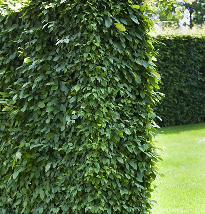 Schauen Sie sich die Blätter an, dann ist leicht zu erkennen, dass es sich bei der Hainbuche botanisch eigentlich um eine Birke handelt. Kennzeichnend für die Pflanze sind weiterhin die Flügelnüsse, welche der Wind hunderte Meter weit tragen kann und die Nagern und Vögeln als Nahrung dienen. Hainbuchen werden bevorzugt als Hecken angepflanzt und können Ihnen als Lärm- und Sichtschutz Nutzen bringen. Die Pflanze verträgt einen kräftigen Rückschnitt und behält ihre Blätter bis lange in die kalte Jahreszeit.