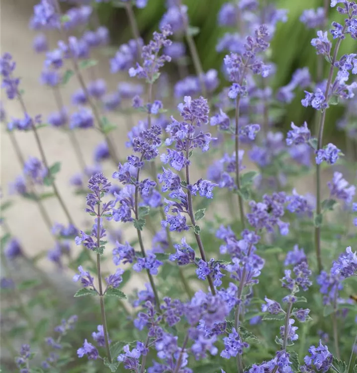 Nepeta x faassenii 'Purrsian Blue' bildet lippenförmige, blaue Blüten ab Mai.