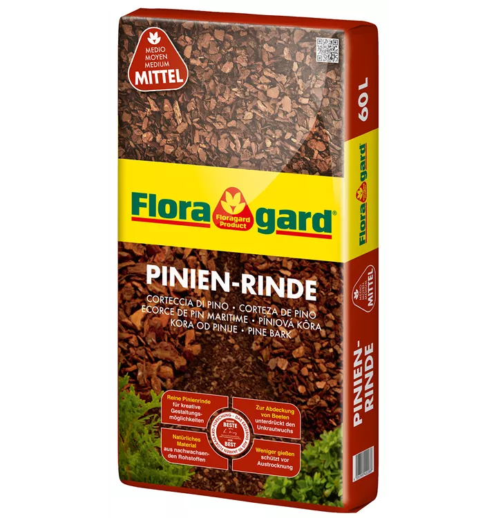 Die Floragard Pinienrinde ist ein naturbelassener Bodenbelag in mittlerer Absiebung. Durch ihre besonders schöne Form und Färbung ist sie sehr attraktiv und bietet kreative Gestaltungsmöglichkeiten für die nachhaltige Pflege und Verschönerung des Gartens. Sie unterdrückt auf natürliche Weise Unkrautwuchs und schützt vor Verschlämmung, Austrocknung und Erosion. Auch besonders zur dekorativen Abdeckung von Kübeln und anderen Pflanzgefäßen geeignet. Im Winter und Herbst werden die empfindlichen Pflanzenwurzeln vor Frost und Kälte geschützt. Die naturbelassene Pinienrinde ist des Weiteren für die Ausbringung im Terrarium geeignet.