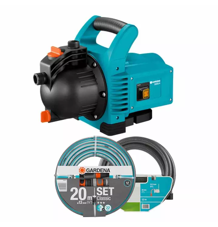komplett mit 20 m 13 mm (1/2")-Schlauch inkl. Armaturen und 3,5 m Sauggarnitur