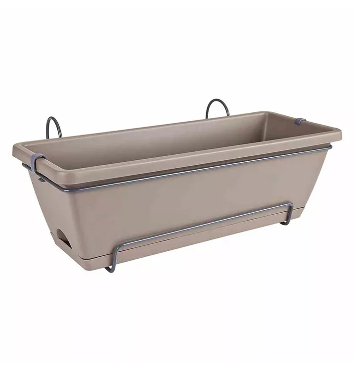 komplettes Set aus Balkonkasten, integriertem Untersetzer und Halter