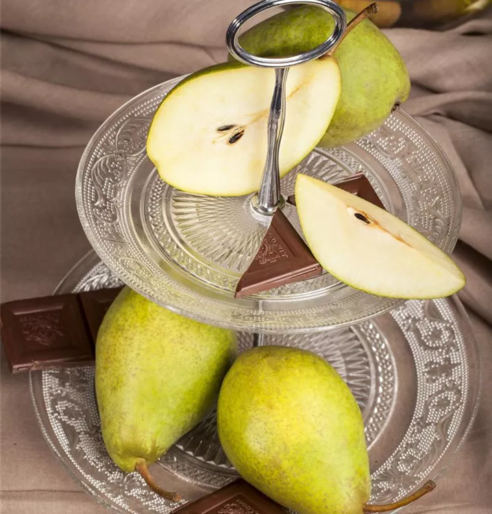 Auch wenn man dem Volksmund folgt und Äpfel und Birnen nicht miteinander vergleichen soll, so haben sie doch eins gemeinsam: ihre weltweite Verbreitung. Die Birne ist neben dem Apfel nämlich das bekannteste Kernobst. Die Blüten der Sorte „Köstliche aus Charneux“ gesellen sich zu den anderen weißen Frühlingsboten der Monate April und Mai. Wenn der Gärtner ab Mitte Oktober die Birnen erntet, kann er sich außerdem am prächtigen orangegelben Laubkleid des winterharten Obstbaums erfreuen.