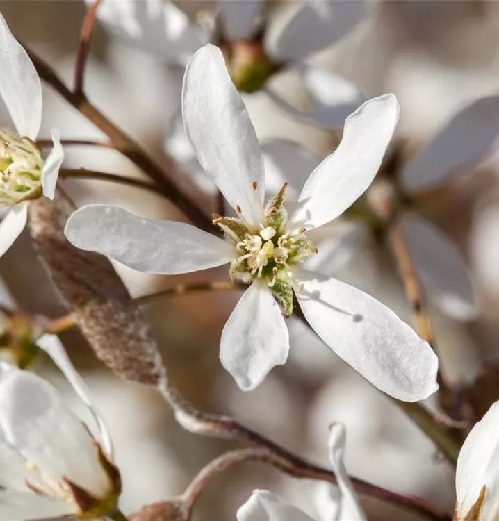 Die Kupfer-Felsenbirne bildet weiße Blüten von April bis Mai.
